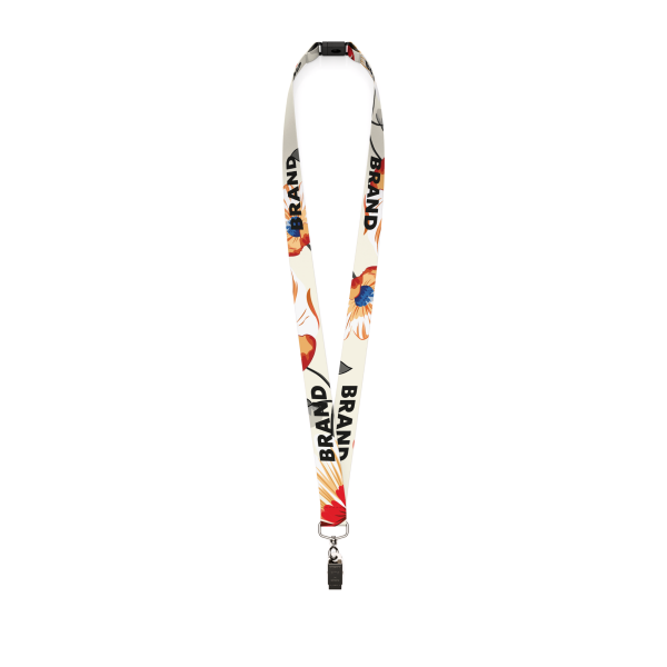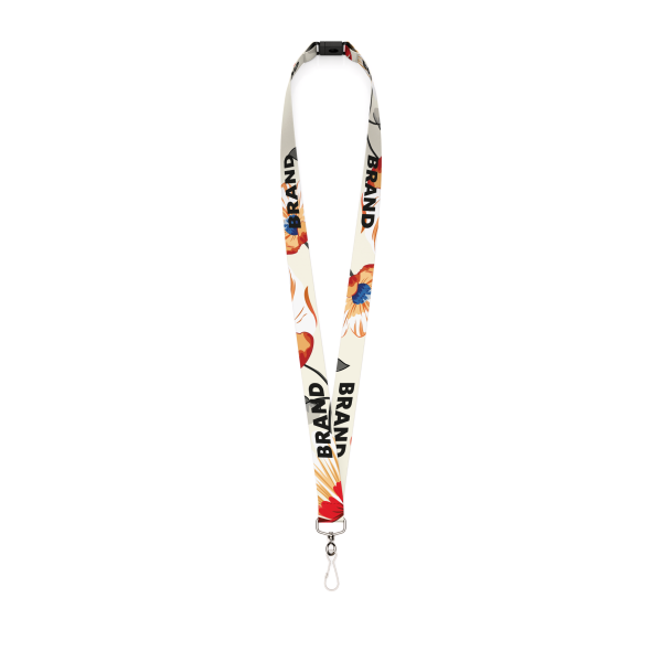 Sublimatie‑lanyard gemaakt van fijn polyester. De linten van ca. 90 cm worden aan beide zijden bedrukt met jouw full‑colour ontwerp en fotografische afbeeldingen.