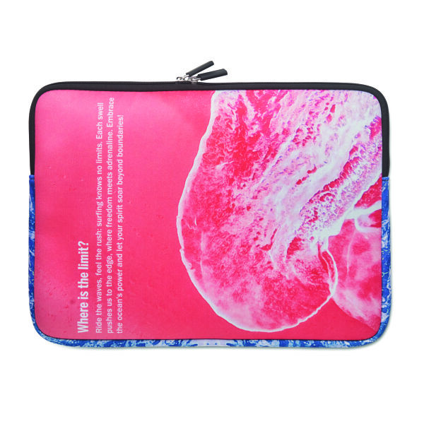 Gesublimeerde full‑colour laptophoes gemaakt van schokabsorberend neopreen. Het lichte, waterafstotende en flexibele neopreen zorgt voor een perfecte pasvorm en beschermt je laptop tegen krassen en lichte stoten. Afmetingen: 13 inch: 33 × 26 cm, 15 inch: 38 × 28 cm, 17 inch: 42 × 31 cm. Materiaal: metalen ritssluiting. 3 mm neopreen met polyester film.