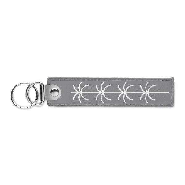 Stoffen keytag met dubbele metalen ring en jouw geweven logo aan beide zijden. Kies je favoriete kleur voor de basis en rand en voeg je logo toe. De kleur van basis en rand is aan beide zijden gelijk. Materiaal: 100% polyester.